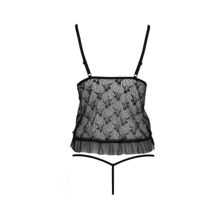 У нас вы можете купить эротическое боди Passion Erotic Line JUSTINA BODY - невероятно сексуальное белье с фантазийным дизайном. Изюминка данной модели - полностью открытая грудь в обрамлении тонких бретелек. Красоту и пышность груди подчеркивает нежное черное кружево с полупрозрачной оборкой. Ромбовидная вставка внизу живота декорирована миниатюрным бантиком. Она плавно переходит в стринги, тем самым акцентируя внимание на бедрах и попке. Почувствуйте себя соблазнительной и желанной в этом эротическом боди.