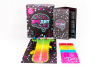 В комплекте: 176 карточек 6-ти разных типов, которые в сумме несут более чем 600 различных слов и фраз, один особый кубик, 4 фишки, игровое поле, правила.